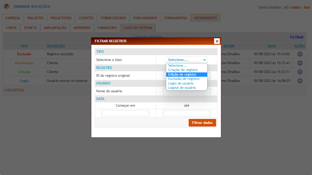 Log do sistema